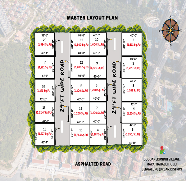 Varahee Prime Meadows @ Marathahalli is a premium residential plotted development offering individual E-Khata plots with smart planning, asphalted internal roads, and essential infrastructure in one of East Bengaluru’s most sought-after locations. The project features well-defined plot sizes ranging approximately from 1,200 sq.ft to 1,600 sq.ft, designed to provide flexibility for custom home construction while ensuring long-term investment value.